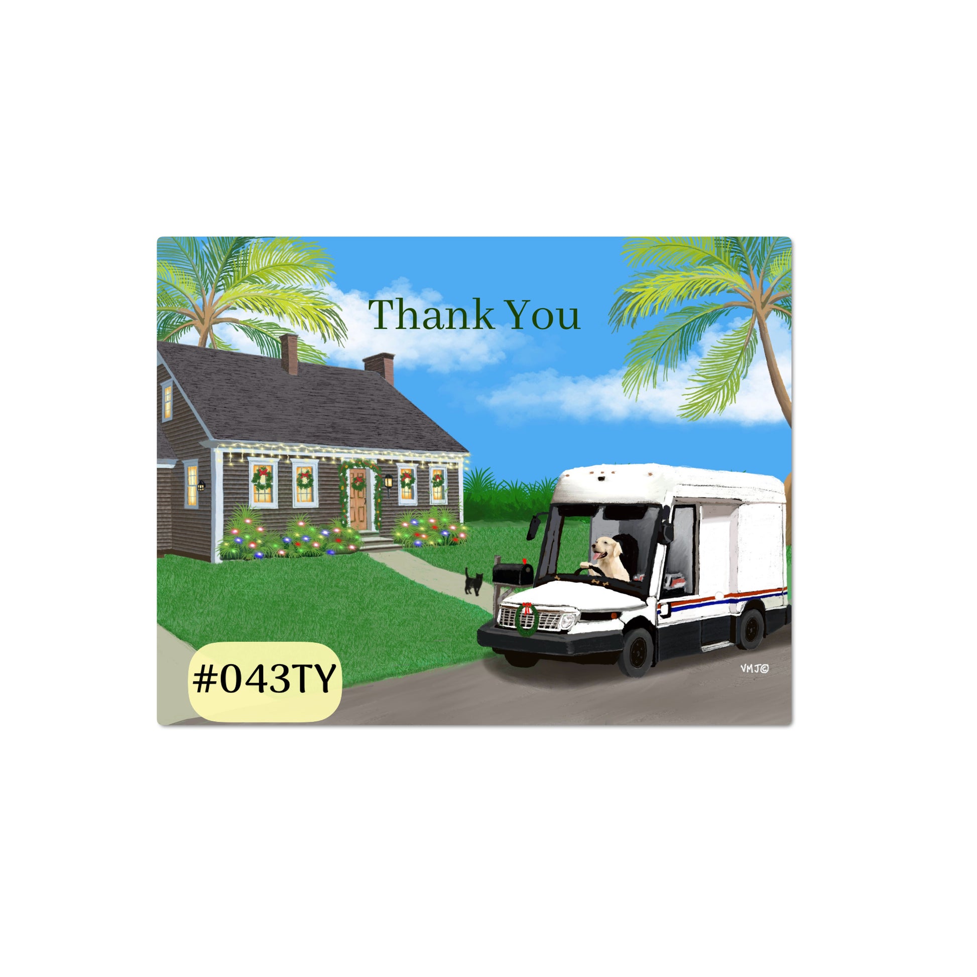 #043TY NGDV Hot Climate style, Dog Driving Mailtruck, Letter Carrier Thank You Post Cards, packs of 50 or 100 postcards,Mail Carrier,